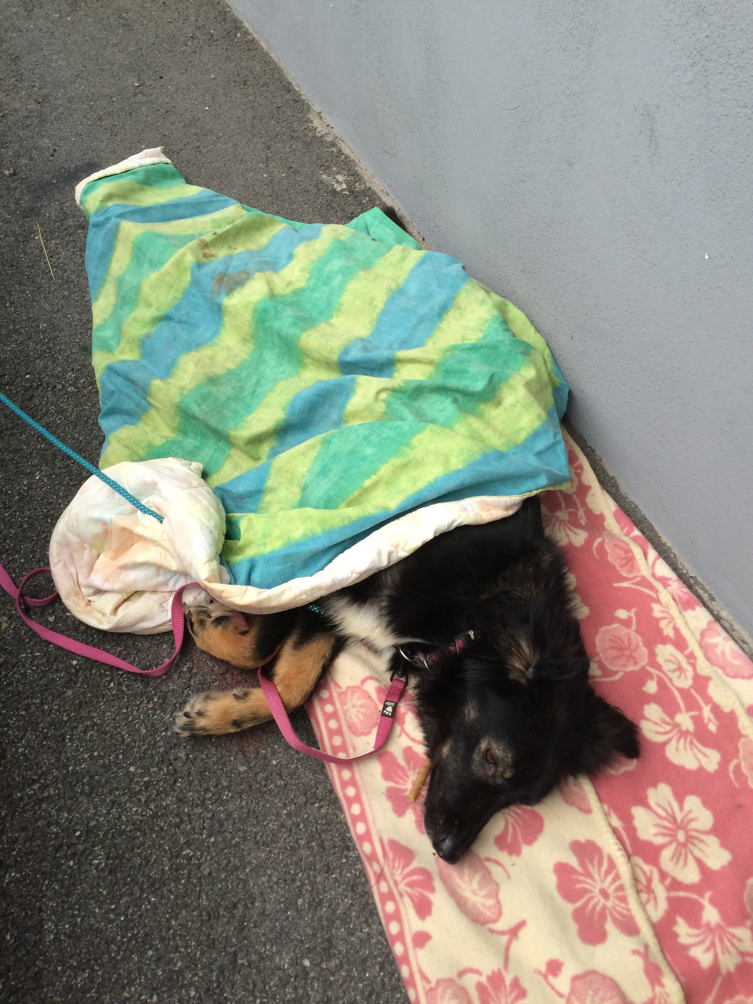 In the afternoon we went to my workshop where I do a lot of upholstery. Elsa slept outside all the time.
